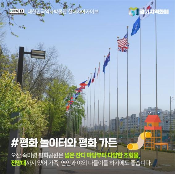 오산의 죽미령 평화공원은 1950년 7월 5일 유엔군과 북한군의 첫 번째 전투가 벌어졌던 곳에 세워졌습니다.